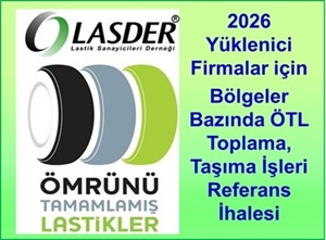 Duyurular LASDER Ömrünü Tamamlamış Lastiklerin (ÖTL) Bölgeler Bazında Toplama ve Taşıma İşlerini Kapalı Zarf Usulü ile Teklif Alarak İhale Edecektir. 21 Kasım 2025 LASDER Genel Sekreteri Sn. Erdal Kurt 3 Mart 2017 GERİ KAZANIM KATILIM PAYI (GKKP) HAKKINDA DUYURU 20 Temmuz 2016 Güncel 11.TÜRKTAY – Türkiye’de Tüm Yönleriyle Atık Yönetimi Paneli 20 Eylül 2021 LASDER, T.C. Çevre ve Şehircilik Bakanlığı Ziyareti 15 Ocak 2019 9.TÜRKTAY – Türkiye’de Tüm Yönleriyle Atık Yönetimi Paneli 18 Ekim 2018
